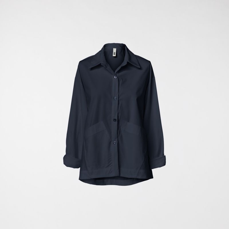 Hemd aus Baumwoll-Popeline. Knopfverschluss vorne. Spitzkragen. Abgerundete Schultern und lange Ärmel. Schräge aufgesetzte Vordertaschen. Bequeme Passform.