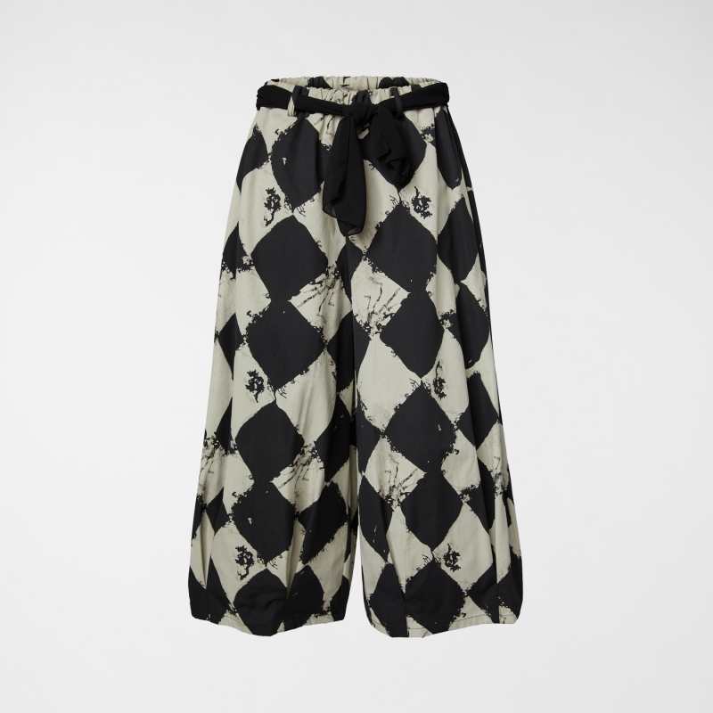 Baumwoll-Hose mit Karomuster. Elastischer Bund mit Schlaufen und integriertem Stoffgürtel. Seitliche Eingrifftaschen. Knöpfe am Knöchel. Weite und bequeme Passform.