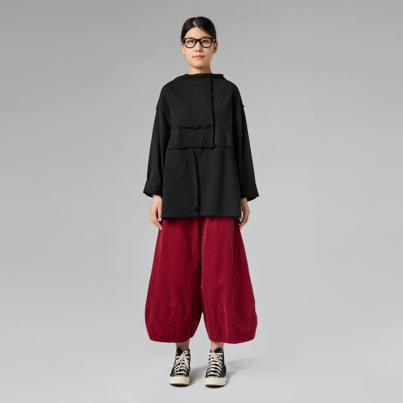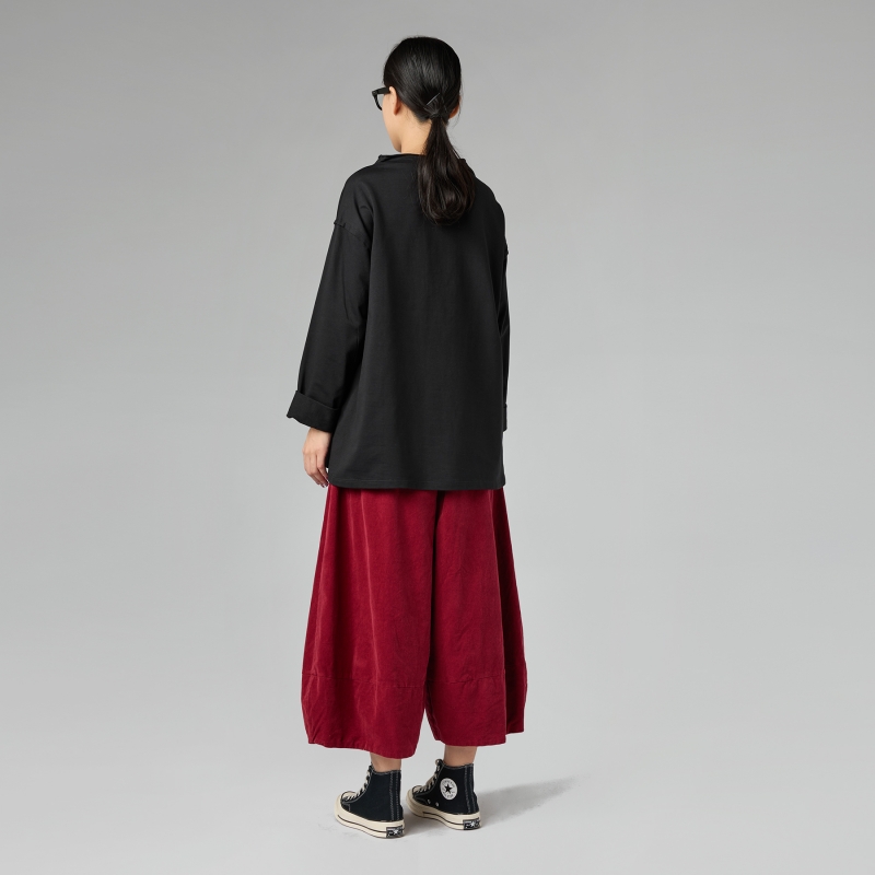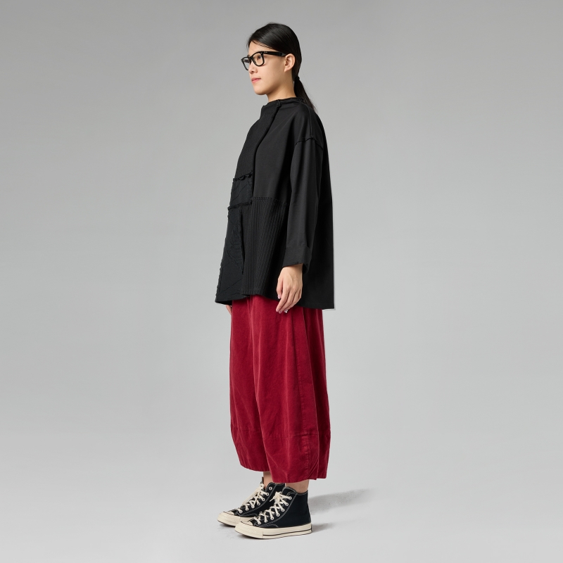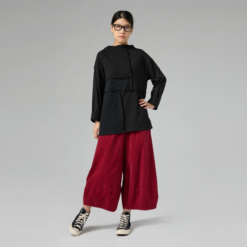 Weite Hose aus Baumwoll-Rippenvelours. Elastischer Bund. Seitliche Eingrifftaschen. Weicher Schritt. Breite und bequeme Passform.