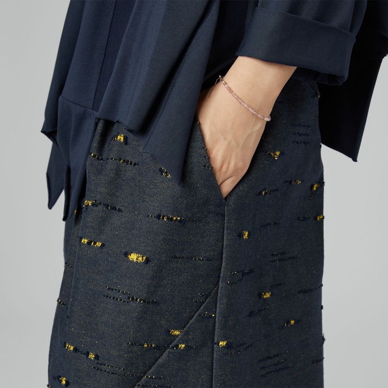 Hose aus Baumwoll-Denim mit Ripp-Effekt und farbigen Einsätzen. Elastischer Bund mit verstellbarem Kordelzug. Seitliche Taschen. Festes Gewebe. Flockige Linie. Weite und bequeme Passform.