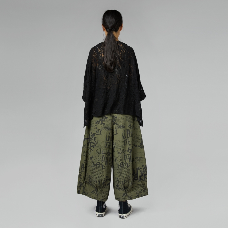 Baumwollhose mit Schriftzug-Druck. Elastischer Bund mit Schlaufen und integriertem Stoffgürtel. Seitliche Eingrifftaschen. Knöpfe am Knöchel. Weite und bequeme Passform.