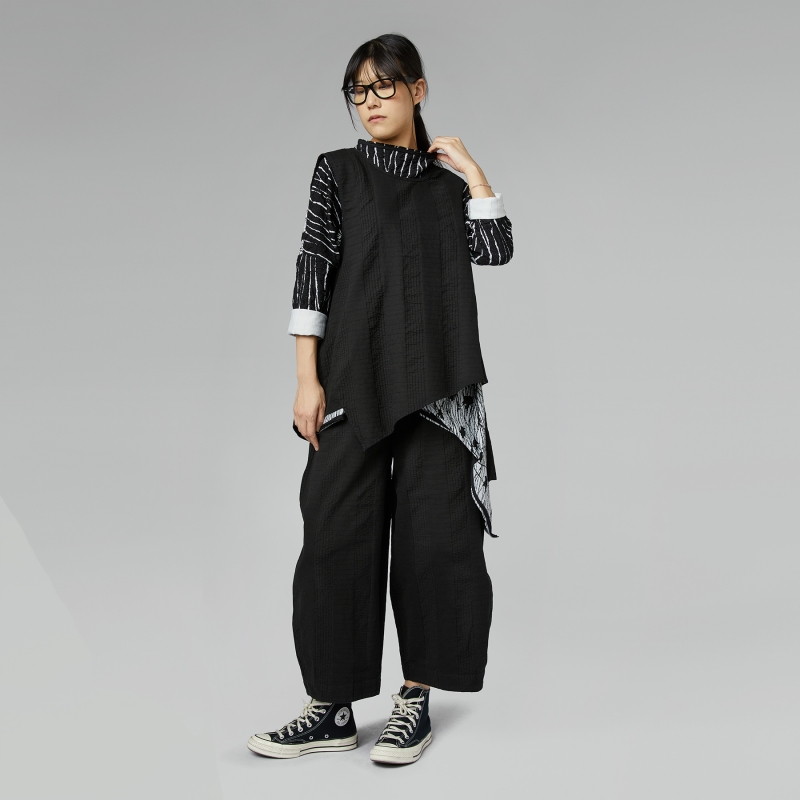 Hose aus geprägtem Baumwoll-Gewebe. Elastischer Bund. Seitliche Taschen. Breite und bequeme Passform.