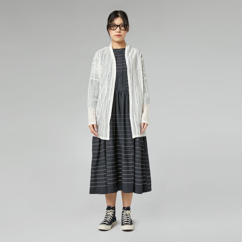 Strick-Cardigan mit 20% Wolle. Schlauchhaltiger Ausschnitt. Abgesenkte Schulter und lange Ärmel. Halbtransparent. Weiche und bequeme Passform.