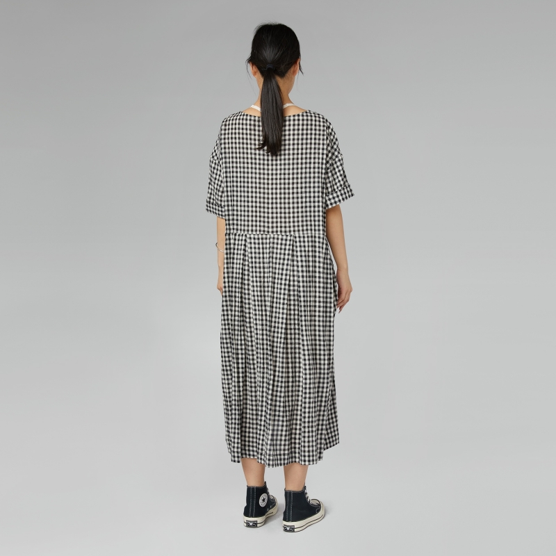 BALLONKLEID MIT AUSSENNÄHTEN SCHWARZ