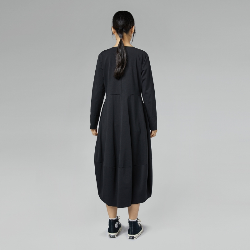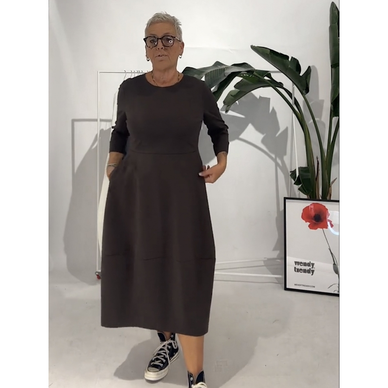 Kleid aus mailandjersey. Rundhalsausschnitt. Seitliche Eingrifftaschen. Eierschnitt. Reguläre Schultern und lange Ärmel. Bequeme Passform.