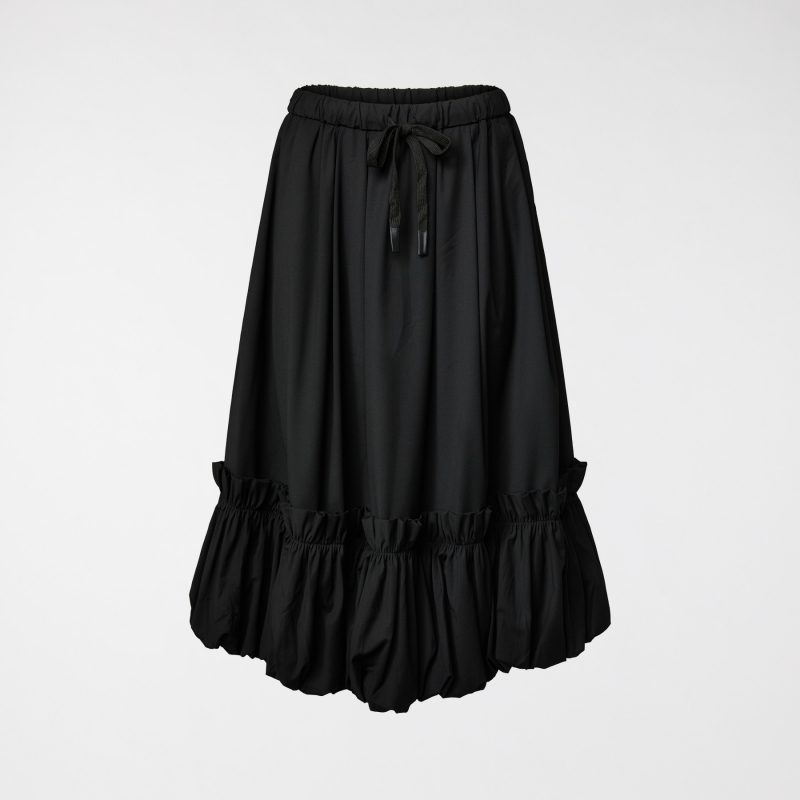 Rock mit Rüschen-Saum. Elastisches Taillenband mit verstellbarem Kordelzug. Seitliche Taschen zum Ausklappen. Verschwommene Linie. Weite und bequeme Passform.