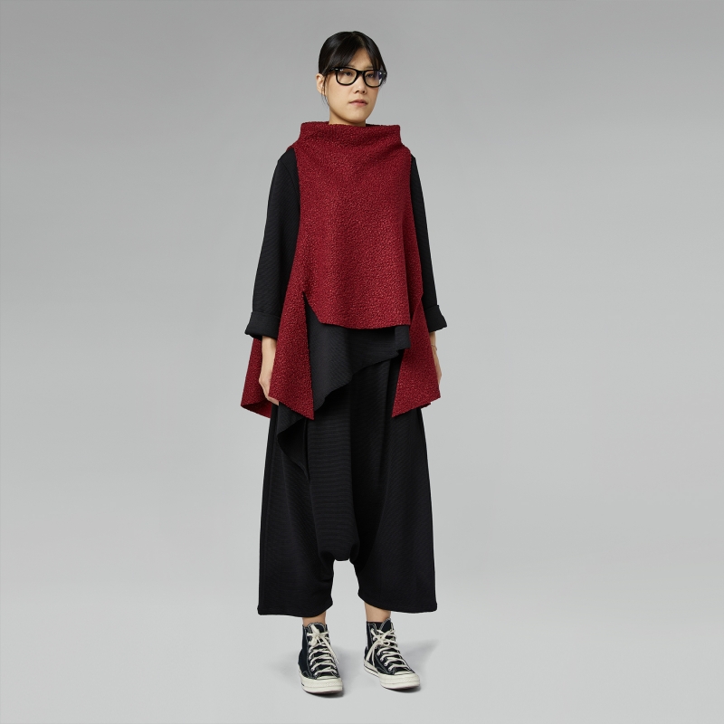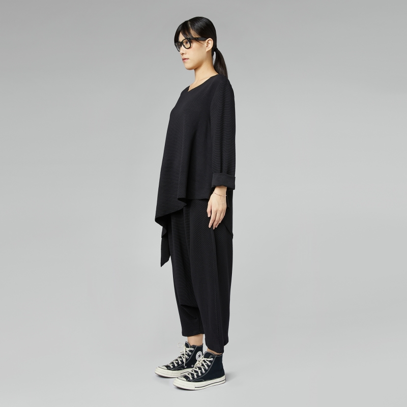 Asymmetrisches Trikot aus gemischter Viskose-Faille. Rundhalsausschnitt. Reguläre Schultern und lange Ärmel. Außennähte auf der Rückseite. Gesäumter Saum. Breite und bequeme Passform.