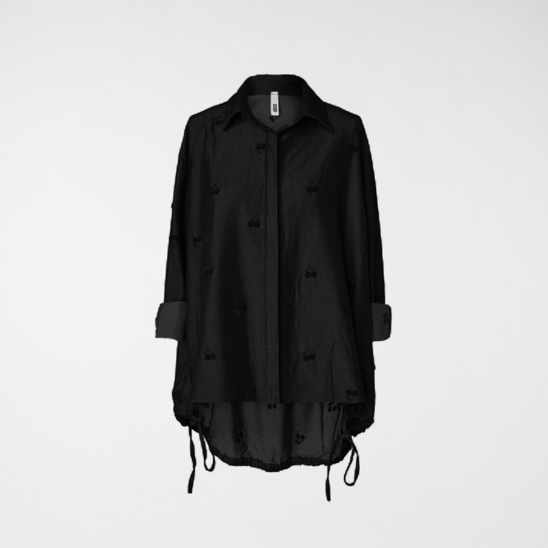 SCHWARZE BAUMWOLL-JACKE MIT KNITTEREFFEKT