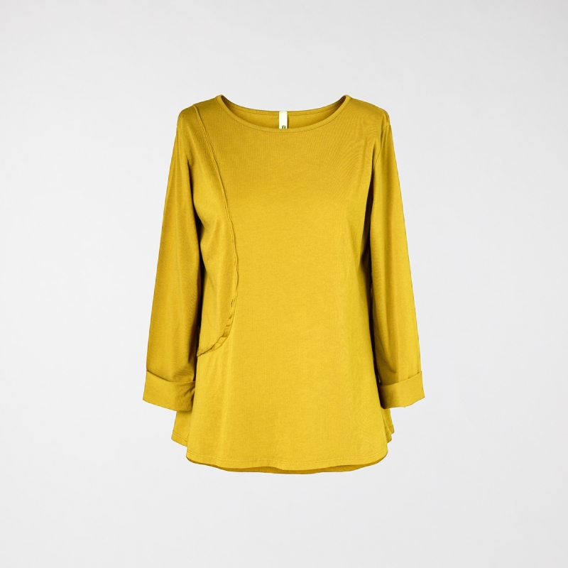 T-SHIRT WITH PLEAT IN PATCHWORK FABRIC