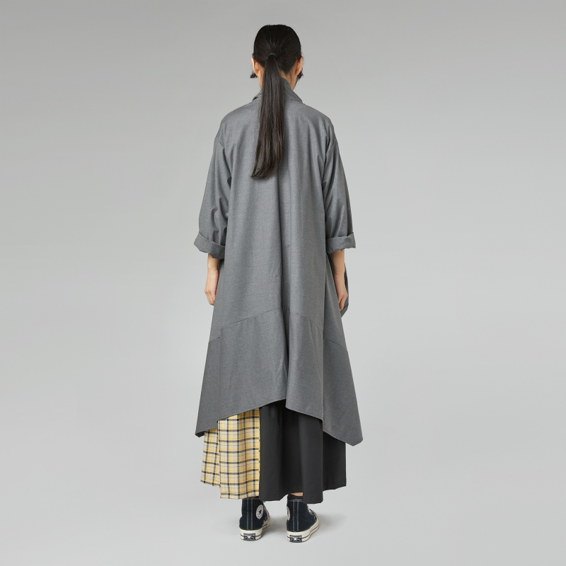 Viscose blend twill cardigan. Shawl collar. Patch pockets. Regular shoulder and long sleeves. Longer at the sides. Long cut. Loose and comfortable fit.