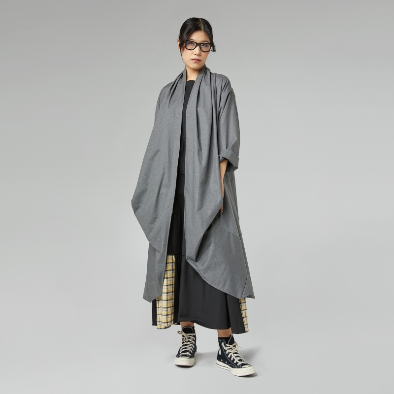 Viscose blend twill cardigan. Shawl collar. Patch pockets. Regular shoulder and long sleeves. Longer at the sides. Long cut. Loose and comfortable fit.