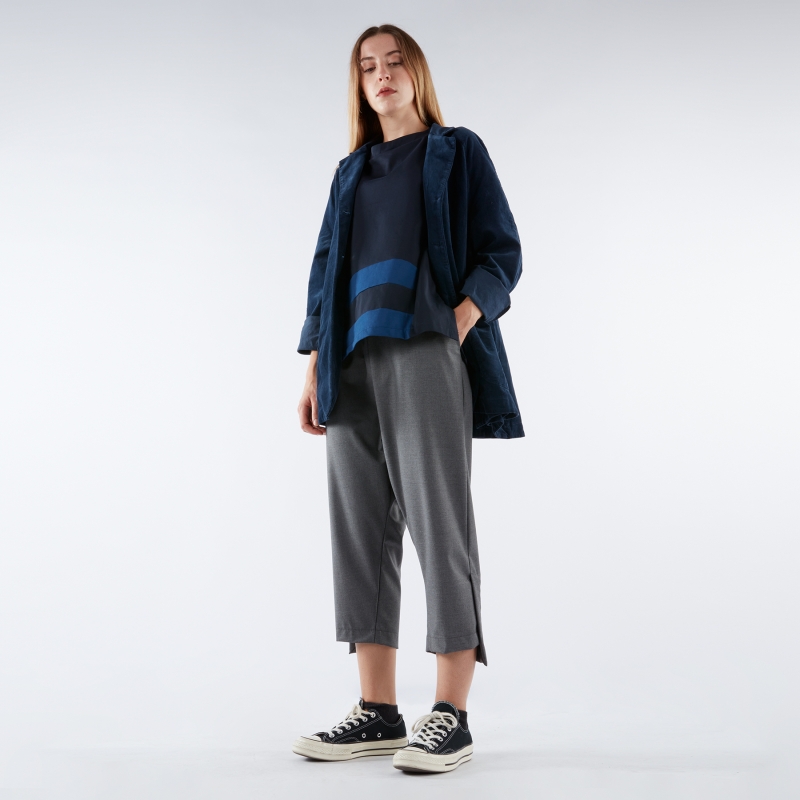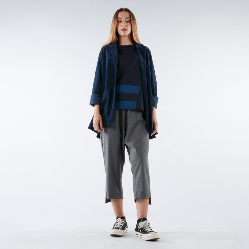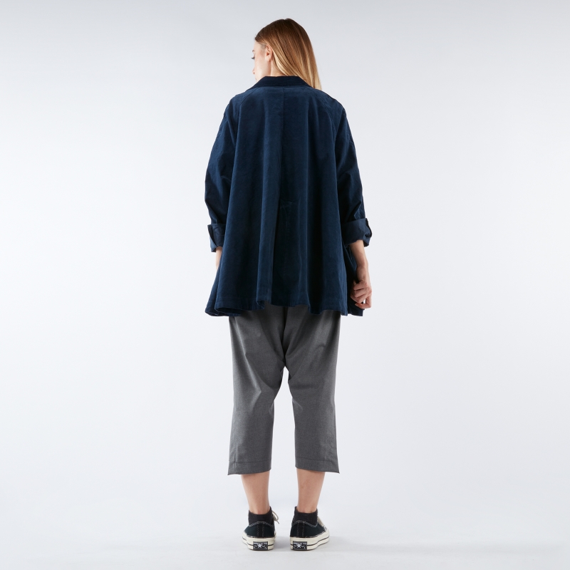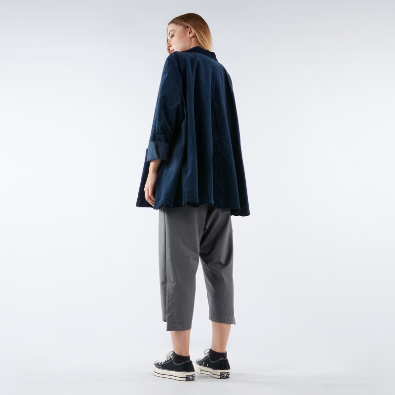 Cotton velvet jacket with lapel collar and soft shoulder. Front button fastening. Flared and voluminous cut. Very loose fit.