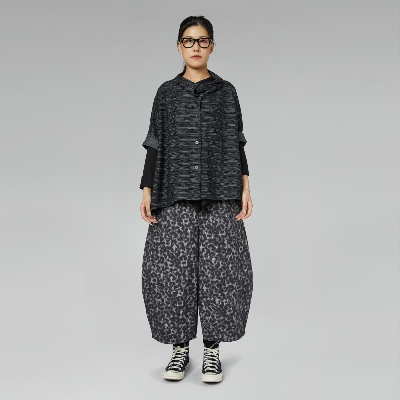 Striped cardigan in viscose and polyester blend fabric. Soft collar. Front button closure. Shoulder dropped and long sleeves. Square cut. Loose and comfortable fit.