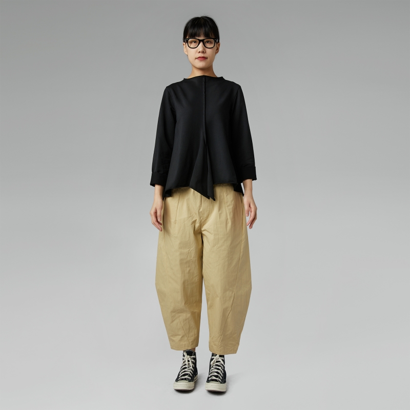 Asymmetric sweatshirt in stretch cotton fabric. Round neckline. Regular shoulder and long sleeves. External frontal seam. Raw-cut hem. Comfortable fit.