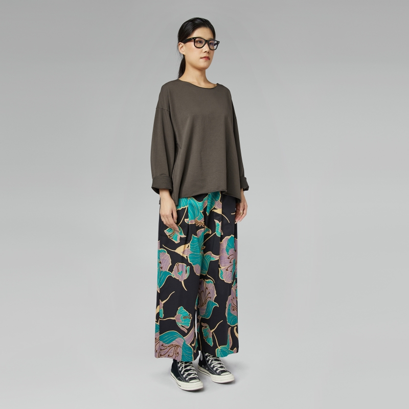 Lightweight sweatshirt in stretch cotton. Round neckline. Shoulder dropped and long sleeves. Raw cut hem. Square cut. Loose and comfortable fit.