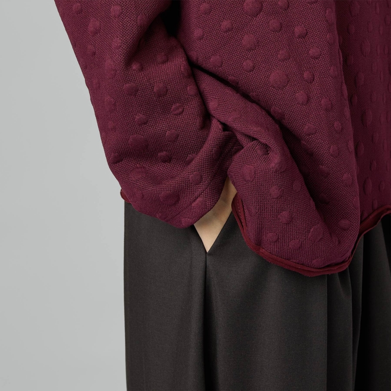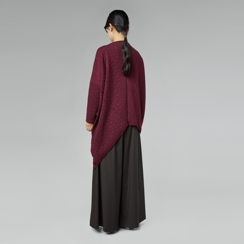 Asymmetric blouse in embossed cotton-blend fabric. Round neck. Shoulder down and long sleeves. Side tip. Soft hand. Warm and comfortable fit.