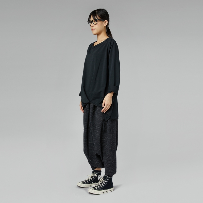 LIGHTWEIGHT SWEATSHIRT WITH PLEATED HEM BLACK