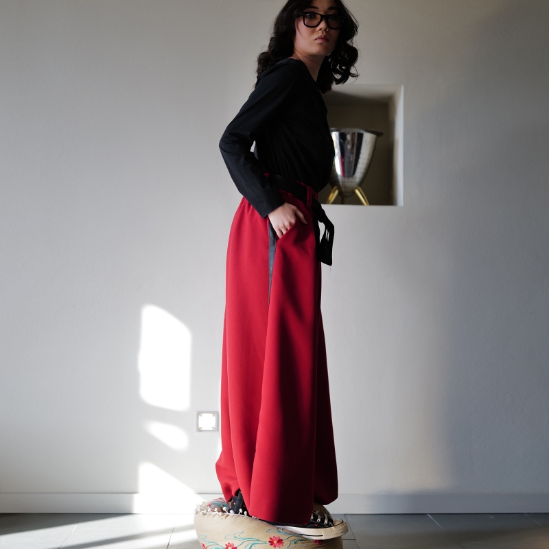 VELVET PLEATED TROUSERS BLACK