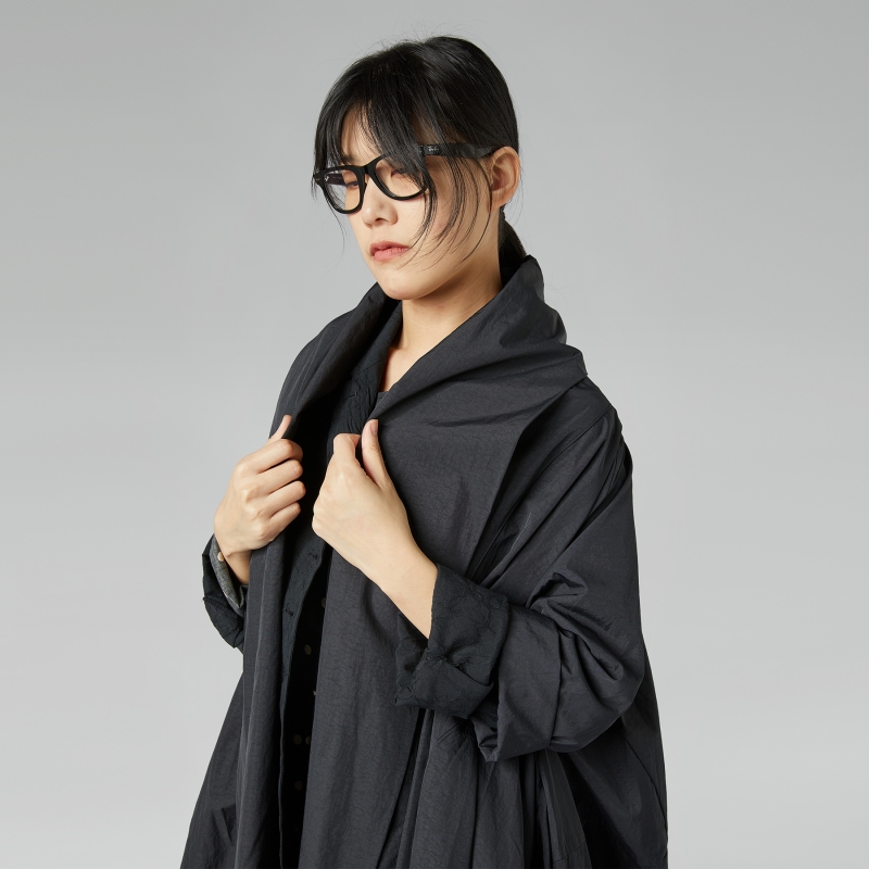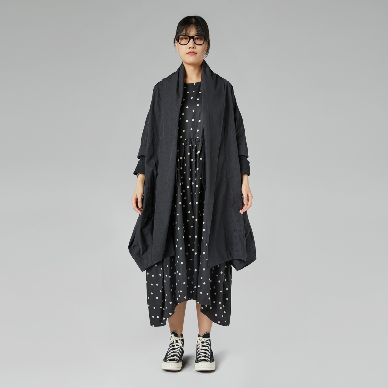 Cárdigan en tejido con efecto tafetán. Cuello chaleco. Hombro raglán y mangas largas. Bolsillos laterales ocultos. Corte acampanado. Ajuste amplio y cómodo.