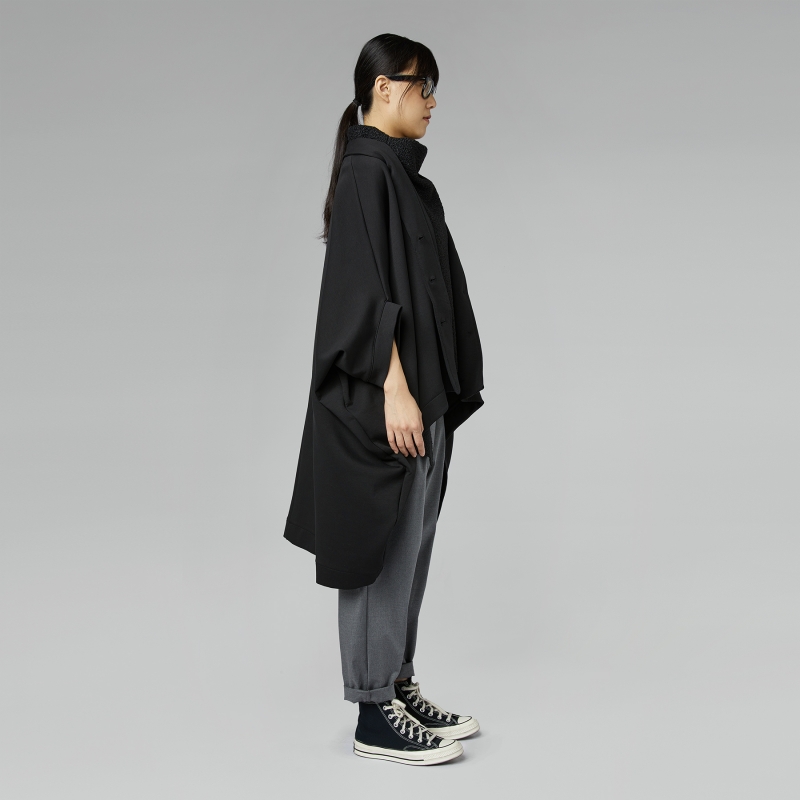 Chaqueta de felpa en mezcla de algodón con mangas de murciélago. Cuello chal. Cierre frontal con botones. Dobladillo irregular. Redondeado delante y más largo detrás. Mano suave. Ajuste cómodo y over.