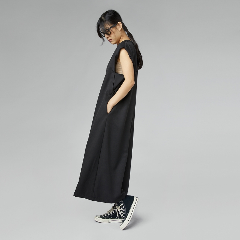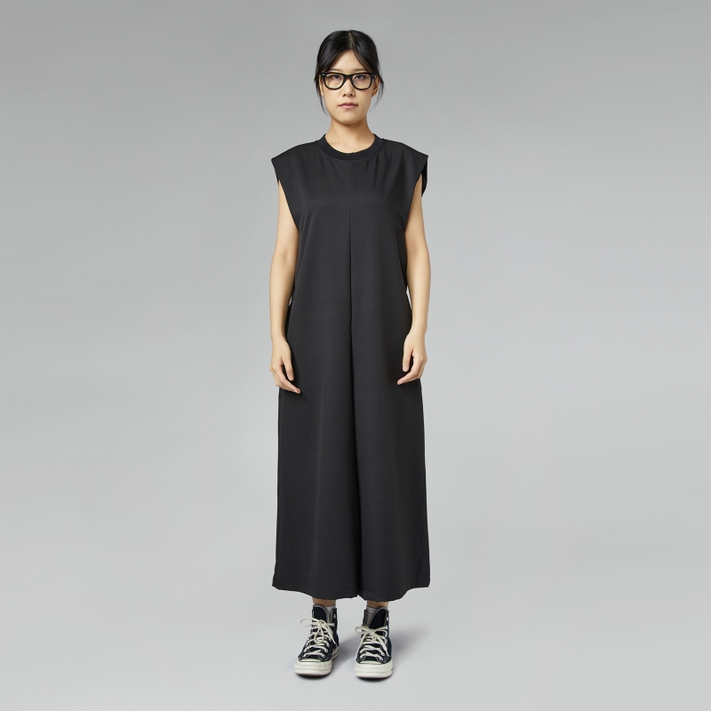 Traje sin mangas con cierre de cremallera en la parte posterior. Cuello redondo con elástico. Bolsillos laterales ocultos. Entrepierna ligeramente baja. Ajuste cómodo.