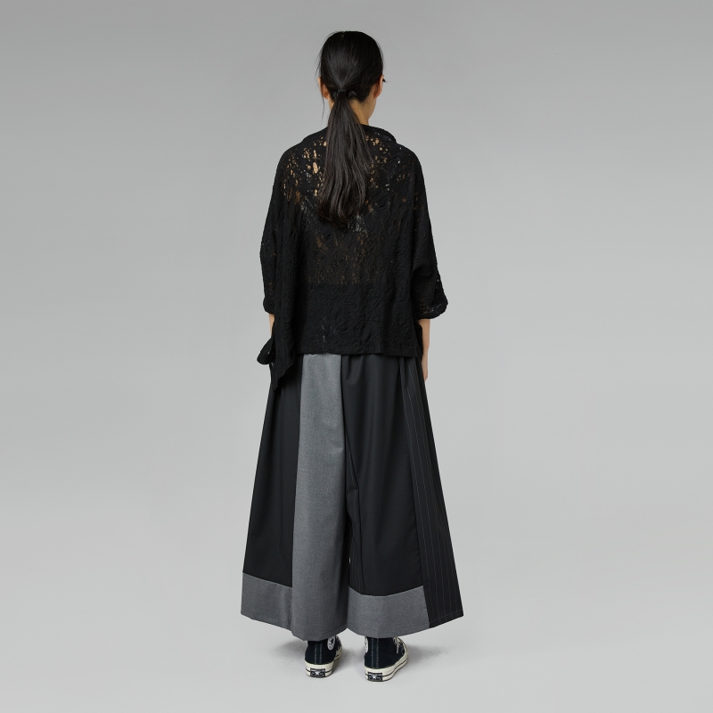 Pantalones acampanados en patchwork. Cinturilla elástica en la cintura con cordón ajustable. Bolsillos laterales ocultos. Entrepié suave. Ajuste amplio y cómodo.