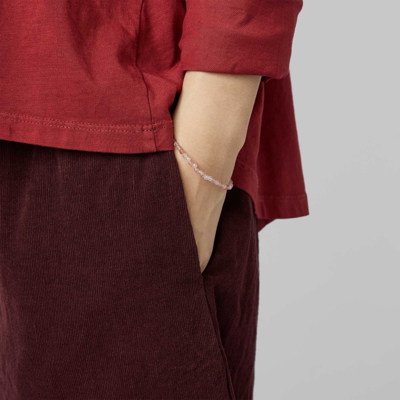 Pantalon à jambes larges en velours côtelé de coton. Bande élastique à la taille. Poches latérales rétractables. Coupe large et confortable.