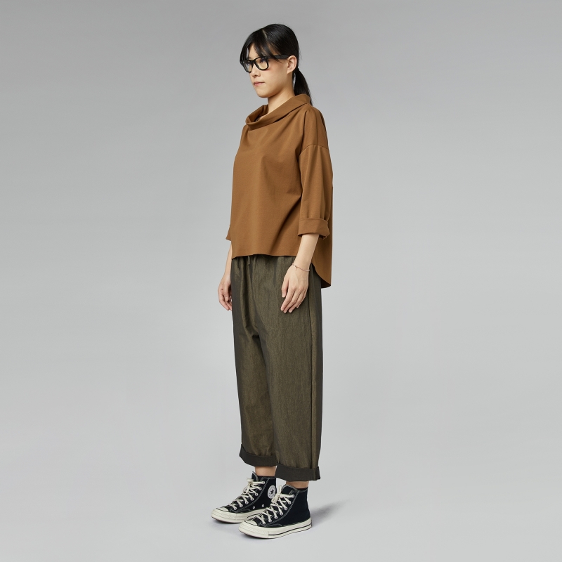 Pantalon droit en coton mélangé. Bande élastique à la taille avec cordon de serrage réglable. Poches latérales rétractables. Légèrement brillant. Coupe douce et confortable.