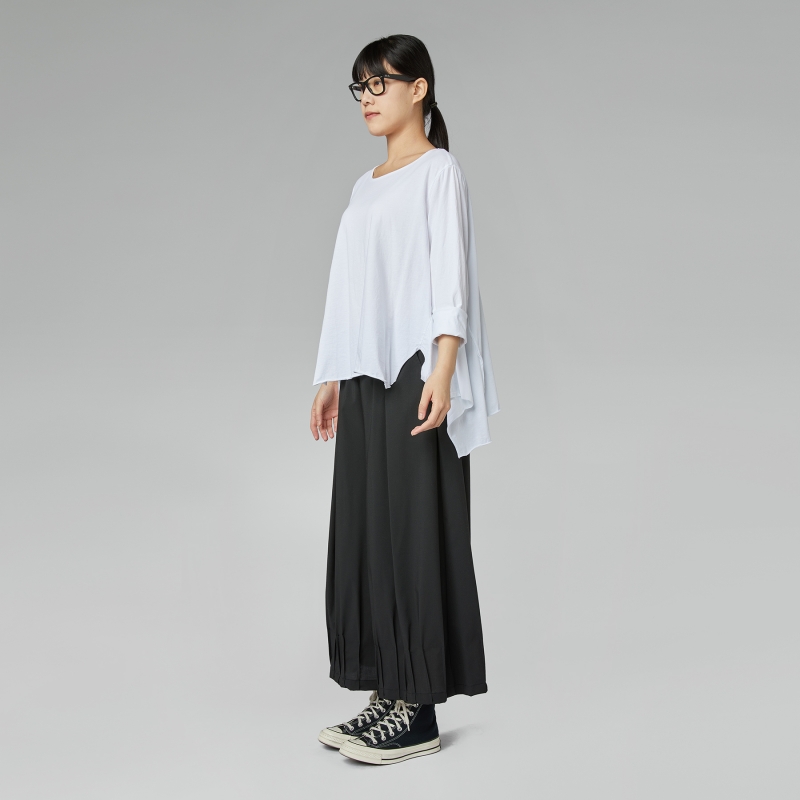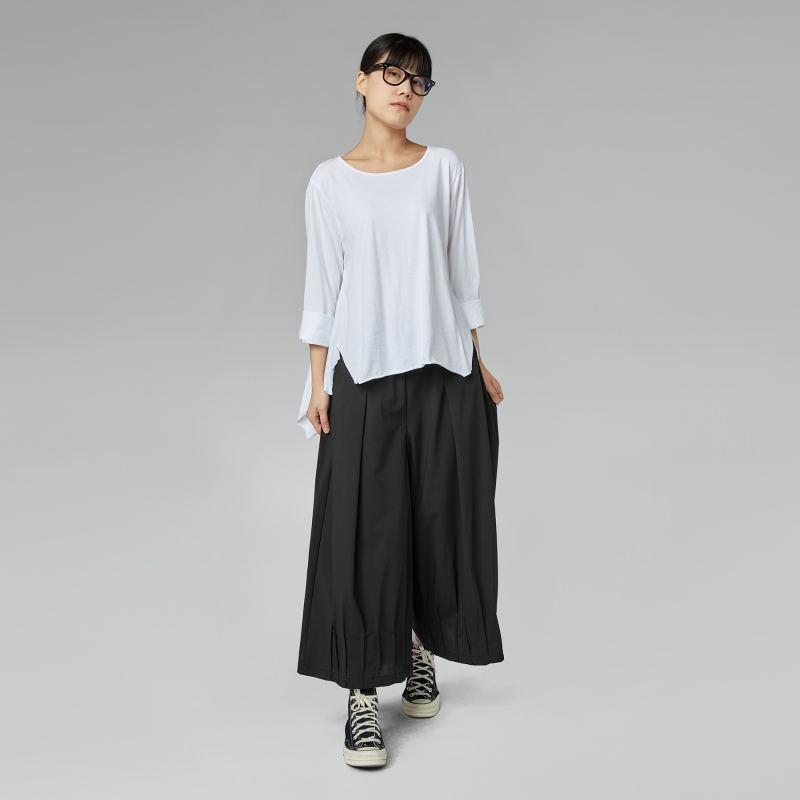 T-shirt en jersey de coton. Fentes latérales. Encolure ronde. Épaules régulières et manches longues. Ourlet à coupe vive. Coupe ample et confortable.