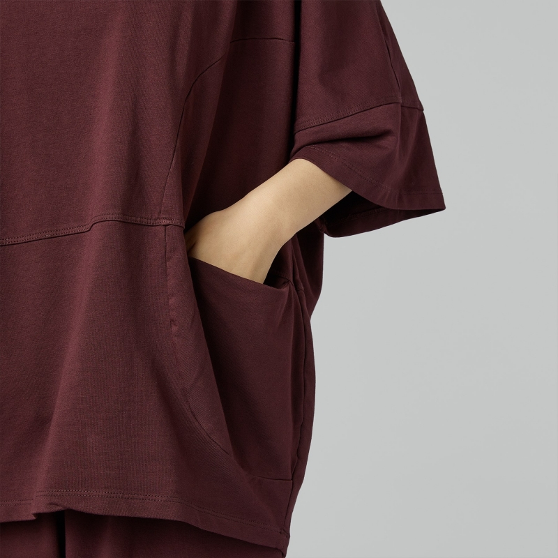 Sweat-shirt léger en jersey de coton. Épaule abaissée et manches larges à 3/4. Avec capuche réglable. Poches insérées dans la coupe. Coupe ample et confortable.