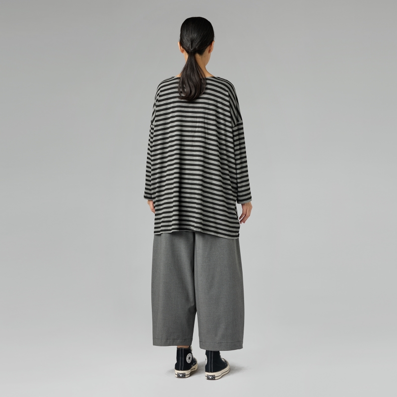 Pull à rayures en tissu de viscose élastique. Encolure ronde. Épaule abaissée et manches longues. Coupe longue. Coupe ample et confortable.