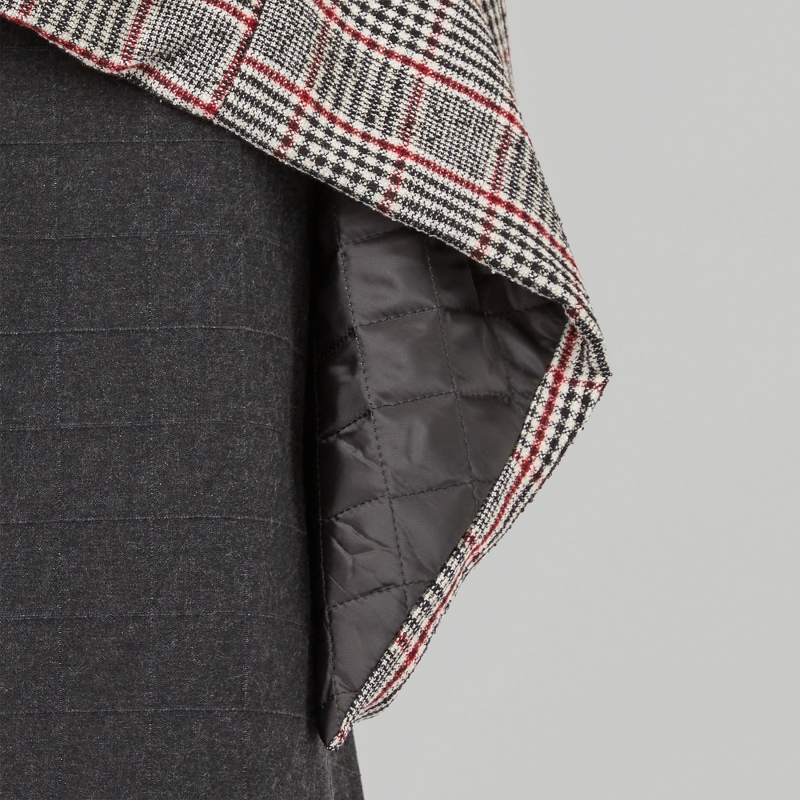 Veste à cape en tissu à carreaux, mélange de laine. Doublure noire. Encolure châle. Fermeture frontale à 1 bouton. Épaules baissées et manches courtes. Coupe ample et confortable.