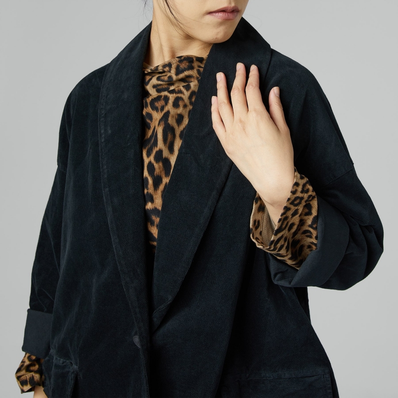 VESTE ASYMETRIQUE EN VELOURS NOIR