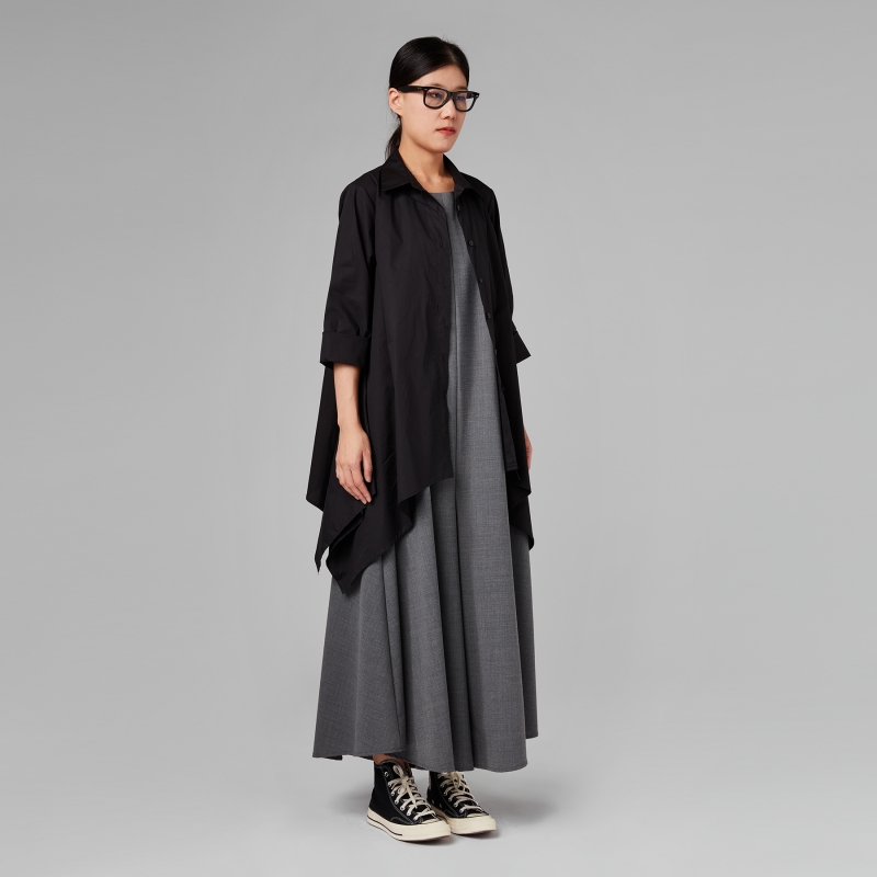Camicia in popeline di cotone con punte laterali. Chiusura frontale a bottoni. Colletto a punta. Spalla regolare e maniche lunghe. Piega sul centro dietro. Taglio lungo. Vestibilità ampia e comoda.