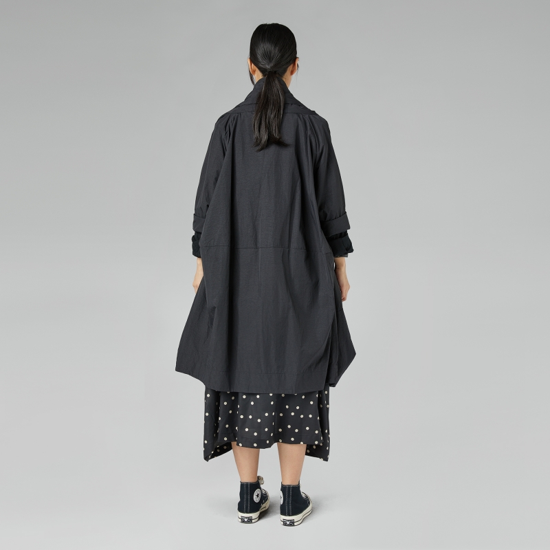 Cardigan in tessuto effetto taffetà. Scollo a scialle. Spalla raglan e maniche lunghe. Tasche laterali a scomparsa. Taglio svasato. Vestibilità ampia e comoda.