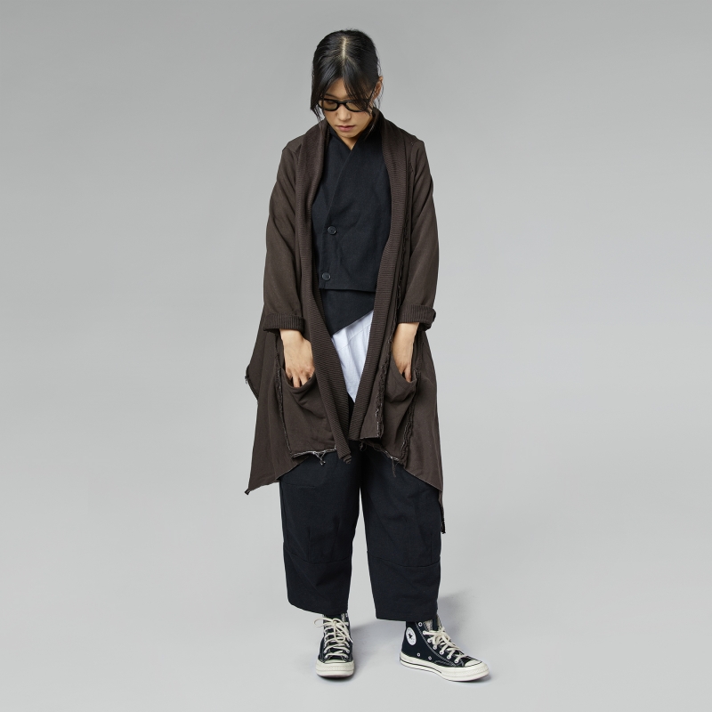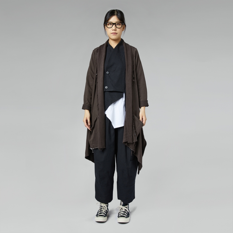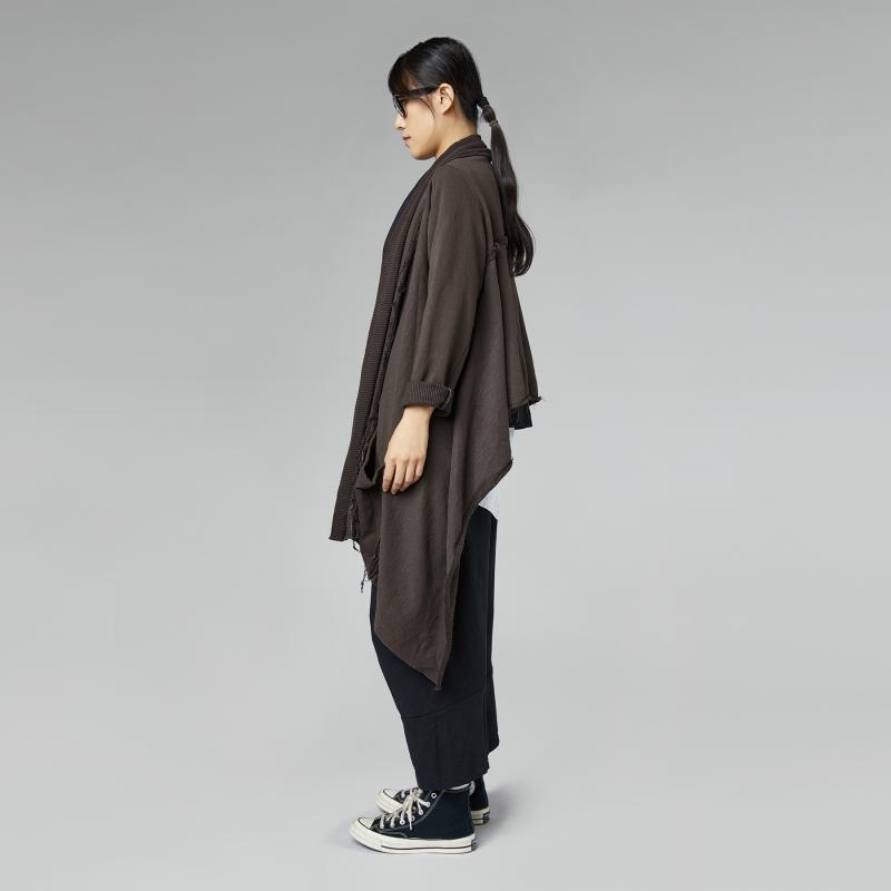 Cardigan in felpa misto cotone. Effetto slavato. Scollo a scialle. Interno a costine. Spalla regolare e maniche lunghe. Tasche applicate. Peso medio. Vestibilità ampia e comoda.