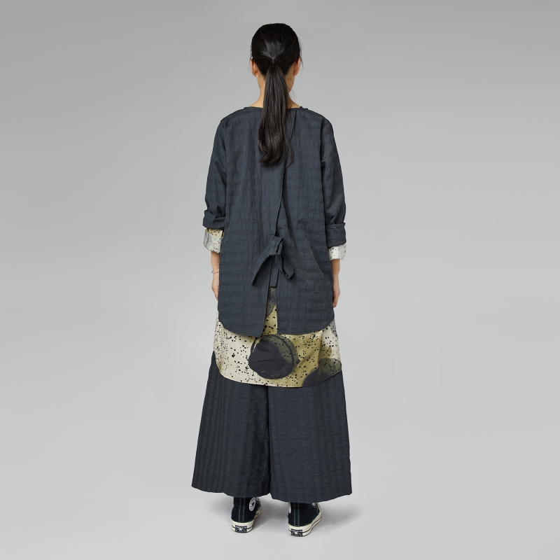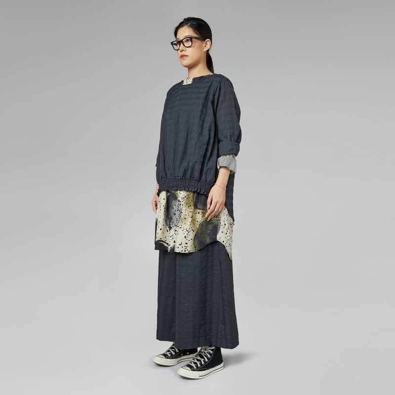 Blusa in tessuto misto cotone. Scollo rotondo. Spalla regolare e maniche lunghe. Banda elastica sull'orlo davanti. Spacco sul centro dietro con fiocco. Più lunga dietro. Vestibilità comoda.
