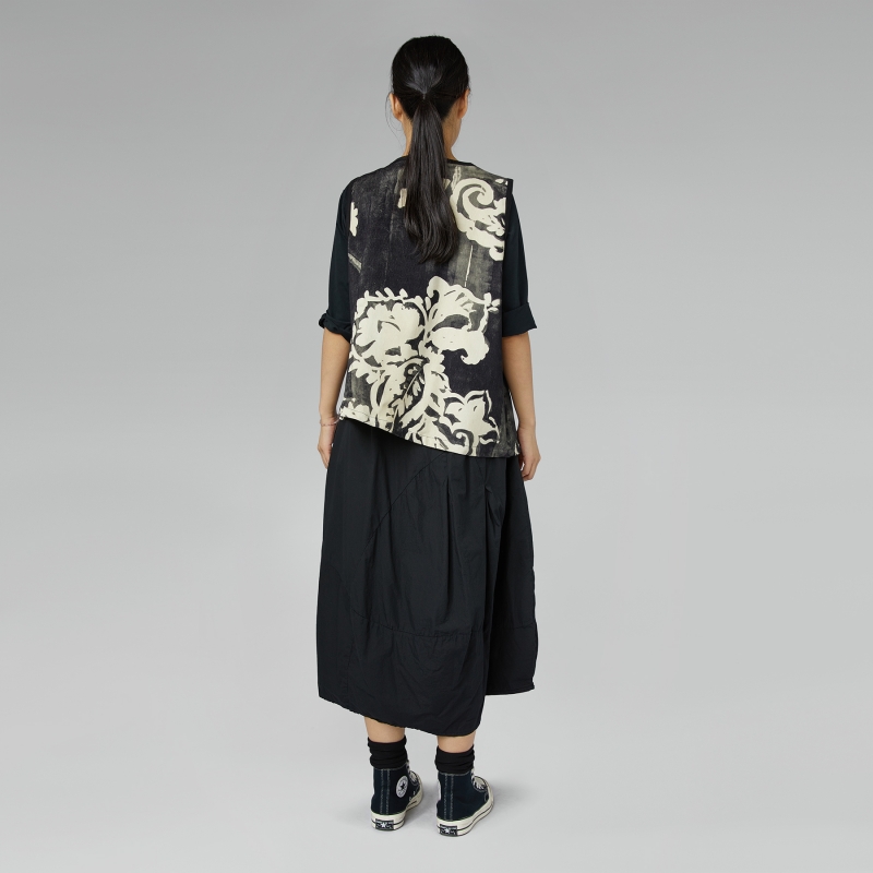 Gilet a costine in cotone con stampa. Scollo rotondo. Orli bordati pendenti. Scollo rotondo. Taglio asimmetrico. Effetto doppio strato. Vestibilità regolare.