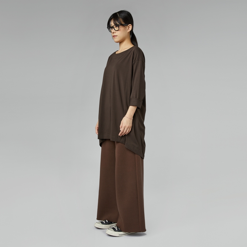 Maglia in jersey di cotone elasticizzato. Scollo rotondo. Spalla calata e maniche lunghe. Coulisse arricciato sul retro. Vestibilità larga e comoda.