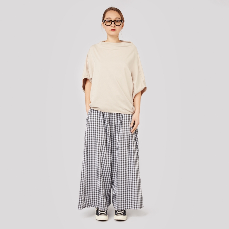 Maglia in felpa leggera di cotone elasticizzato con maniche corte a pipistrello. Collo morbido. Leggermente più lunga sul retro. Vestibilità ampia e comoda.