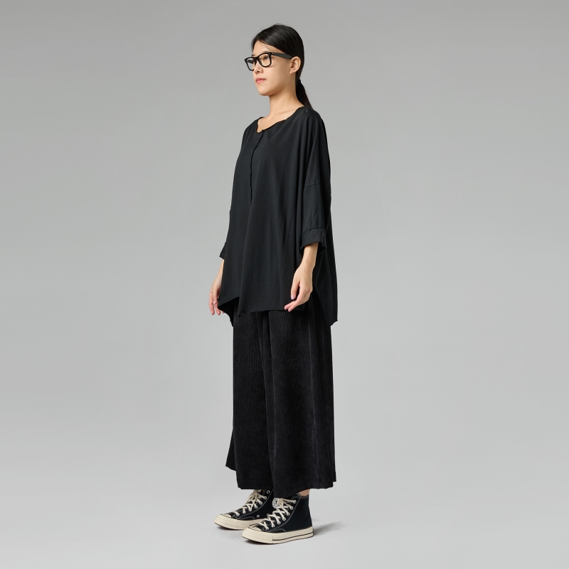 Maglia con taschino in jersey di cotone. Scollo rotondo. Spalla calata e maniche lunghe. Spacco sul centro dietro e sul davanti. Orlo a taglio vivo. Vestibilità ampia e comoda.