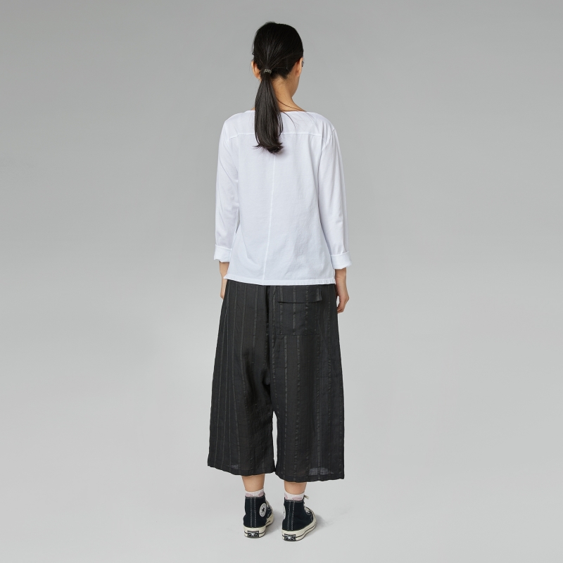 T-shirt con spacchetto davanti in jersey di cotone. Scollo rotondo. Spalla regolare e maniche lunghe.Taglio squadrato. Vestibilità ampia e comoda.